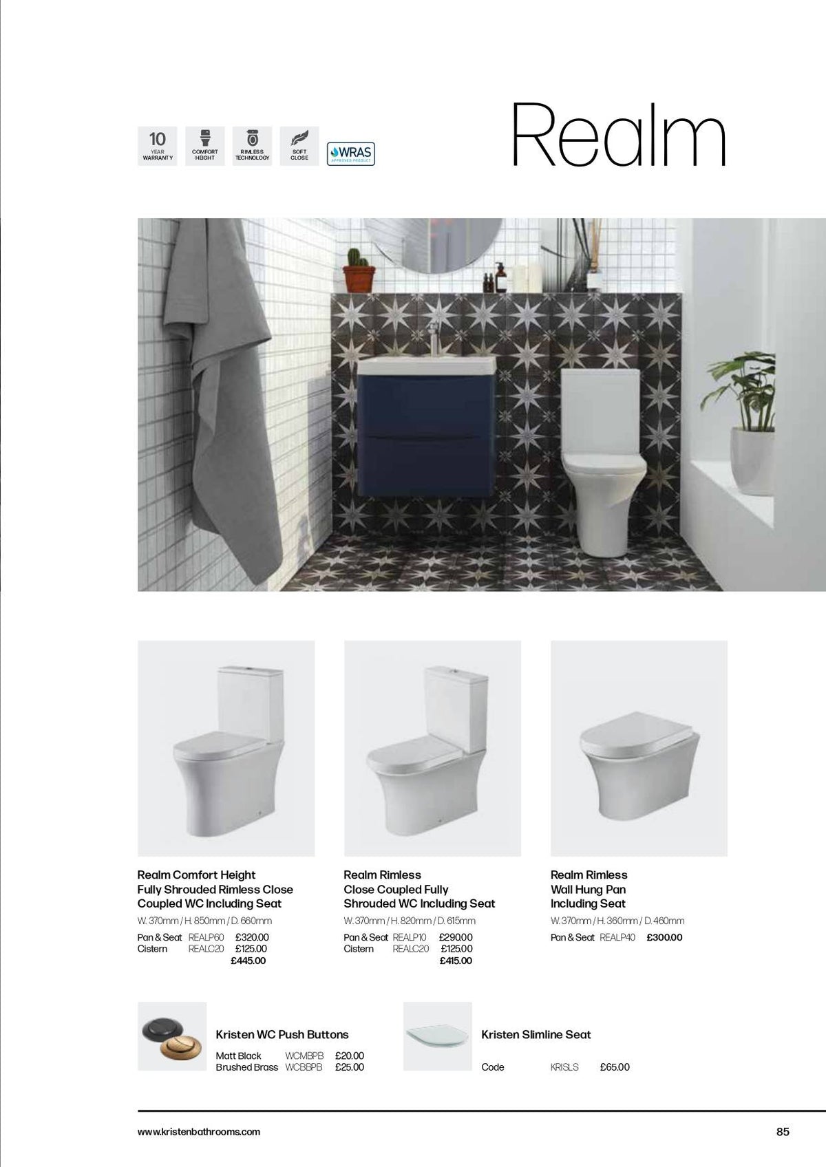 Realm Comfort Height Fully Shrouded Rimless Close Coupled WC Including Seat